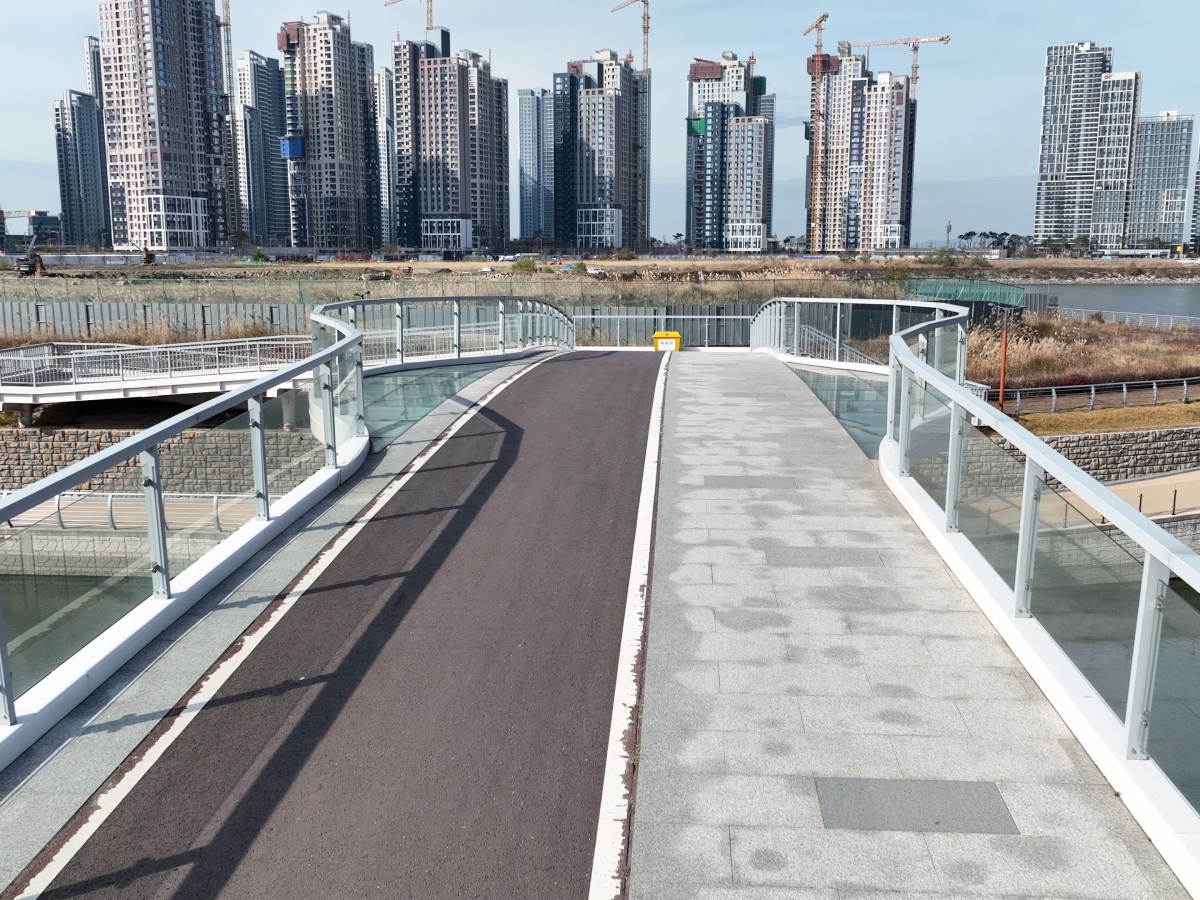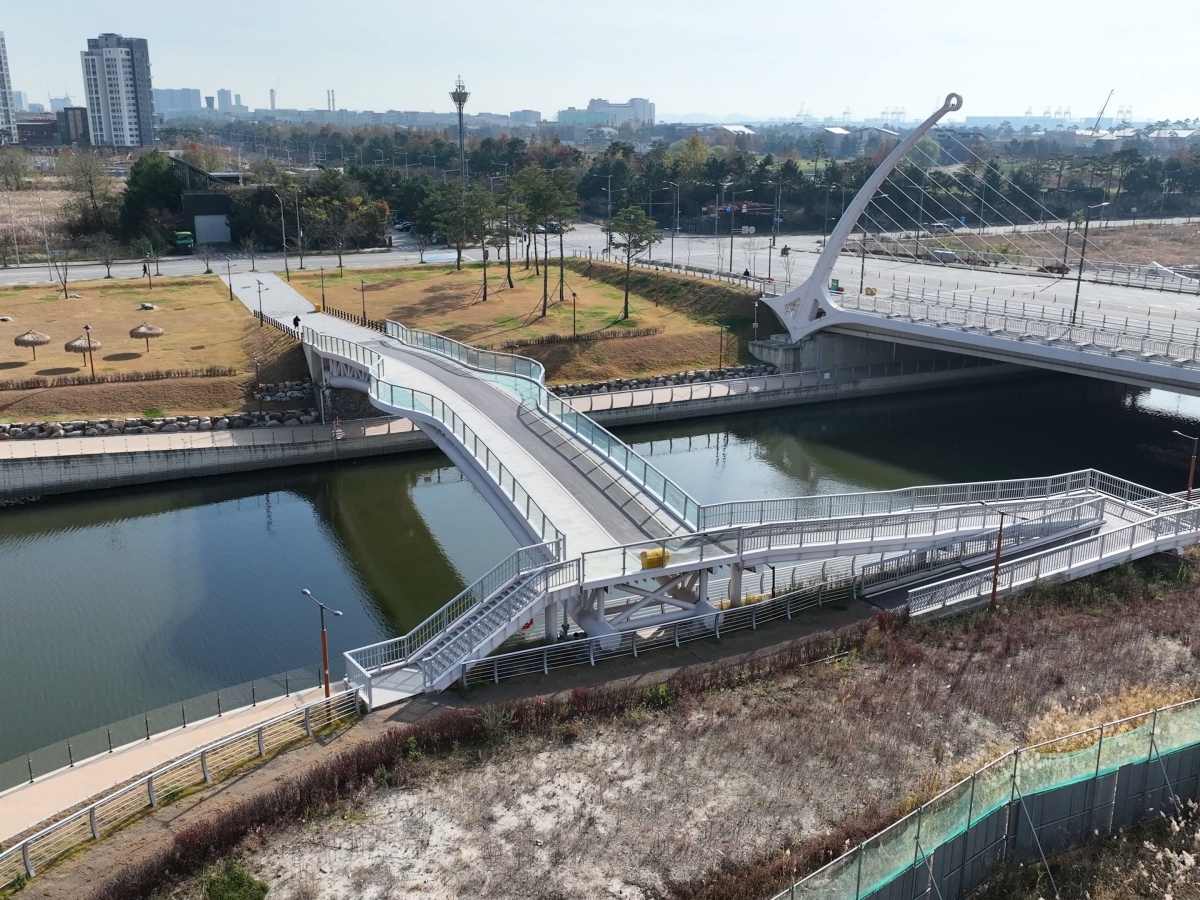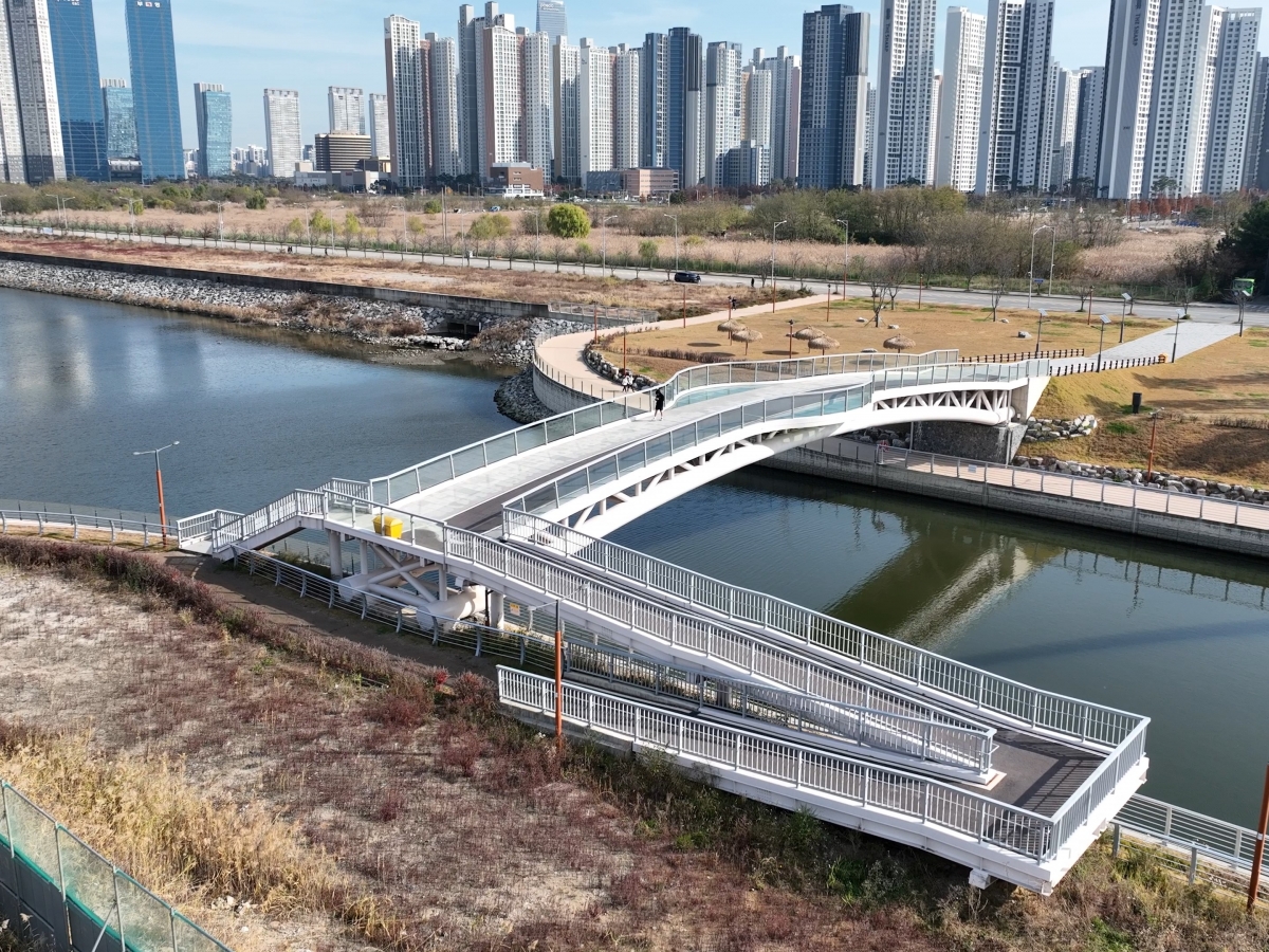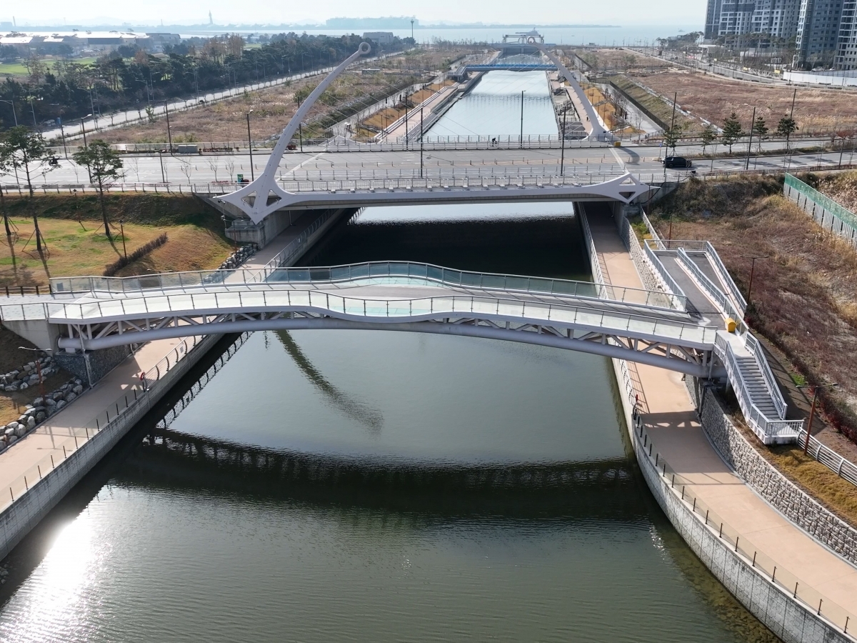 송도국제도시 워터프런트 1-1공구 건설공사 중 강구조공사(보도2교)